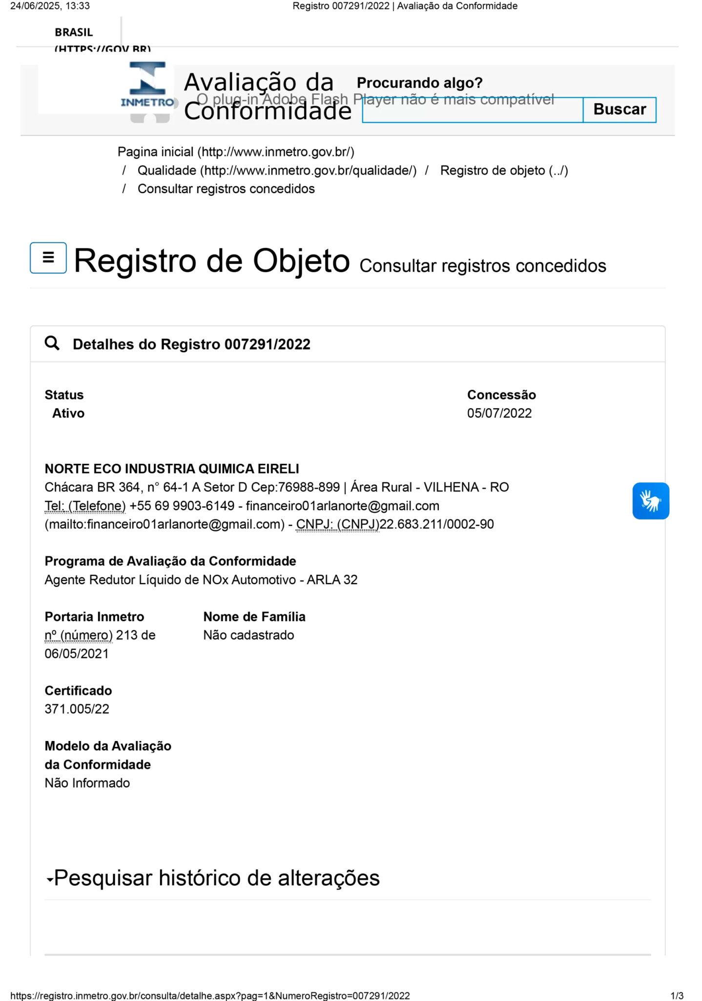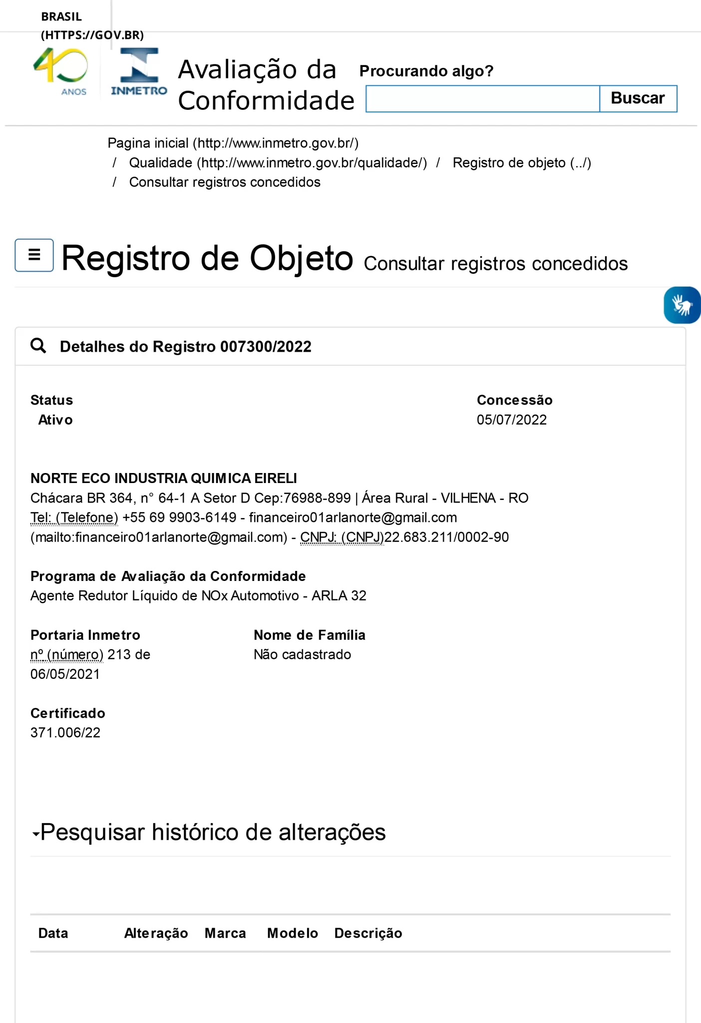 CONSULTE NO INMETRO, PELO LINK ABAIXO, SE O SEU FORNECEDOR ATUAL DE ARLA 32 TEM REGISTRO ATIVO:
